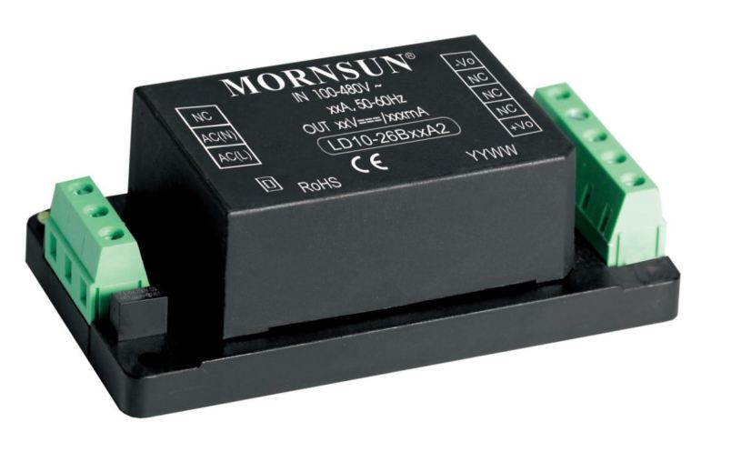 Mornsun lancerer LD – serien, en kompakt strømforsyning til industrielle applikation med høj indgangsspænding. LD10-26B i 10W og LD20-26B i 20W fås med udgangsspændingerne 3.3, 5, 9, 12, 15 og 24V. Strømforsyningen har et ultra bredt indgangsspændingsområde Vin 90-528Vac / 100-745Vdc og kan forsynes med såvel 1 som 2 faser.