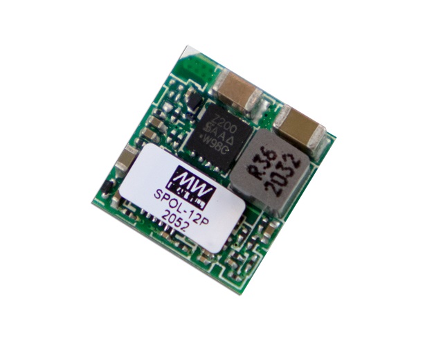 SPOL-12, fra MEAN WELL, kan levere 12 Ampere udgangsstrøm. Power Technic forhandler den ultra kompakte LGA (Land Grid Array), der har størrelsen 12.19 x 12.19 x 3.1mm.