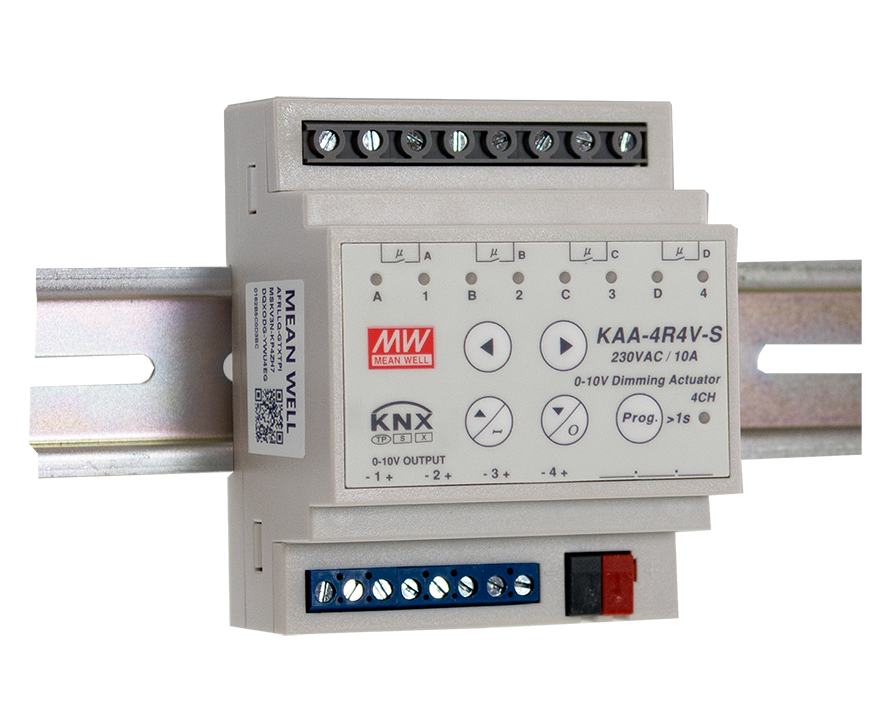 KAA-4R4V-S til MEAN WELLs KNX-system er en forbedring af den tidligere KAA-4R4V. Power Technic forhandler KAA-4R4V-S der supporterer KNX data sikkerhedsfunktion. Dermed beskyttes KAA-4R4V-S mod manipulation. Enheden kan konfigureres med ETS software.