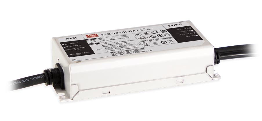 XLG-DA2, fra MEAN WELL, spænder fra 50W til 320W og forhandles af Power Technic. Med en indgangsspænding, der alt efter model spænder mellem 90VAC – 305VAC (Class I).