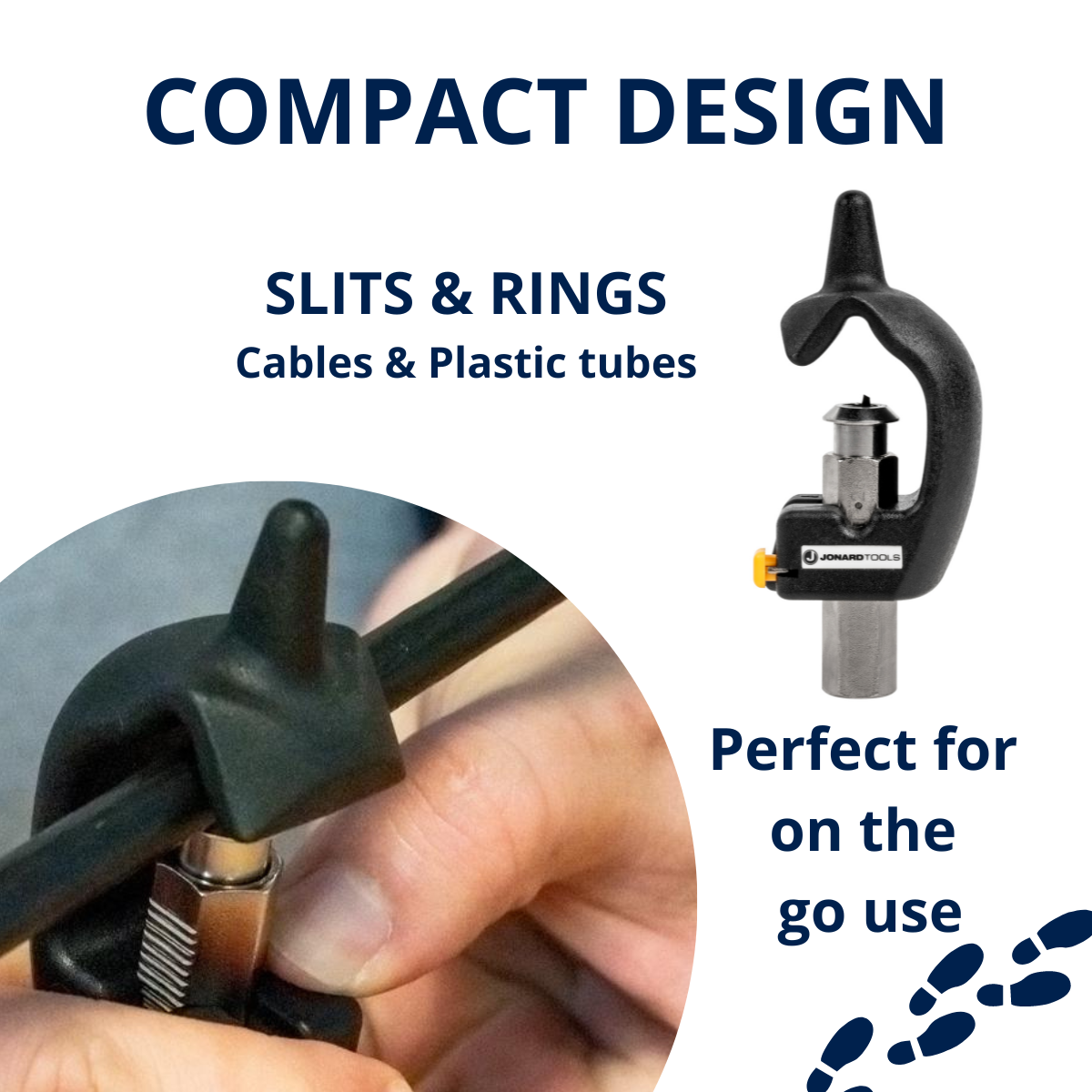 Med den kompakte CST-28 kabelstripper fra Jonard, får du et stykke værktøj til både kabler og plastikrør i størrelsen 6 – 28 mm, der selv automatisk ændrer retning i forhold til, om du skal lave et rundt eller tværgående snit.