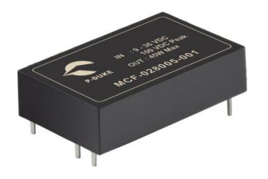 MCF-modellen, der yder 45W og 5A, tåler at arbejde i et omgivelsestemperatur område fra -40°C til +100°C. Den er monteret i plasthus og pottet med silikone (UL94 V-0). Effektiviteten er op til 97 procent. Størrelse på 45W er 40,6mm lang x 25,4mm bred x 10,2mm høj + 5,6mm ben.