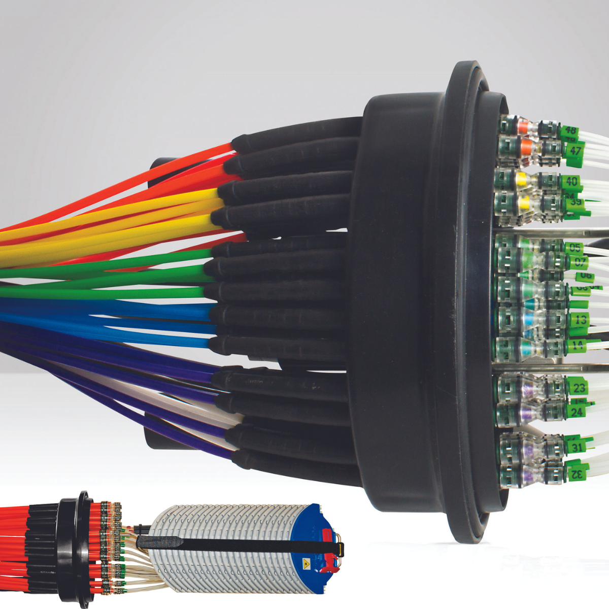 🖌️ CableLok gør det muligt at indføre op til 52 stk. Ø 5mm, Ø 7 mm rør eller små kundekabler i muffen, samtidigt med at der er plads til konnektoren inde i muffen. Derudover er der også plads til hovedkabler og Loop kabler.