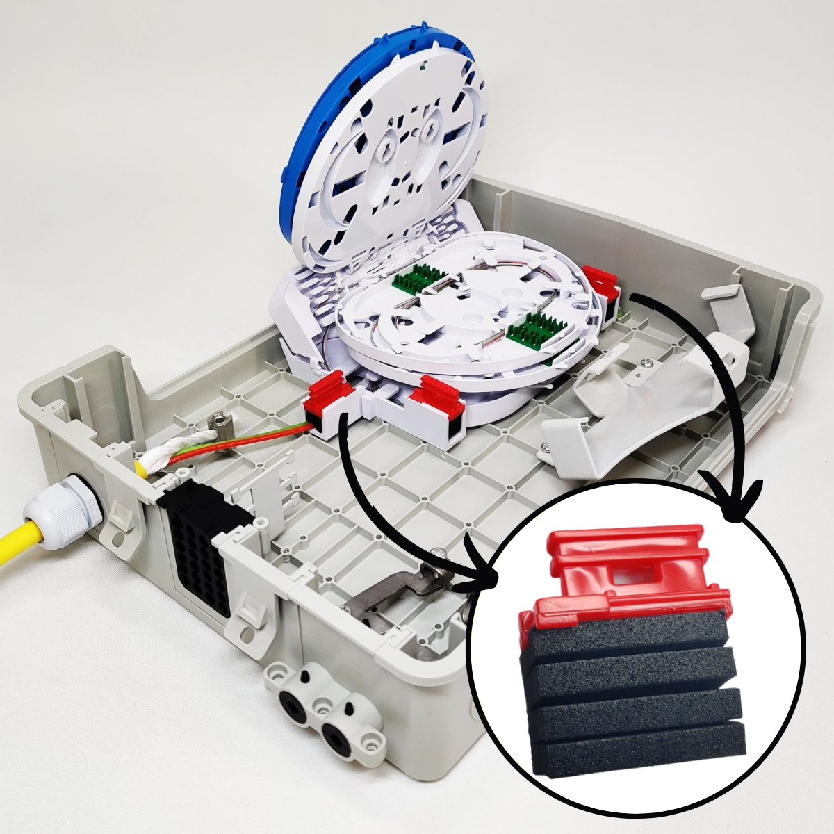 En af de lækre detaljer ved HellermannTyton fiberboksene, er den fleksible entry-block til tray-systemet.