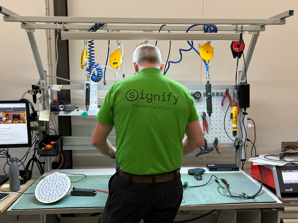 På Signifys fabrik i Hedehusene, Workshop Copenhagen, er der netop blevet lanceret en ny Signify repair service. Initiativet er skabt for at imødekomme den stigende efterspørgsel efter reparation og teknisk modernisering af eksisterende gadelamper frem for nyindkøb.
