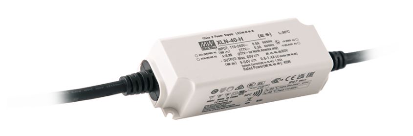 Udgangsstrømmen på 25W-typen kan justeres fra 300mA og 1050mA, hvor udgangsstrømmen på 40W-typen kan justeres fra 600mA og 1400mA, begge med NFC. Effektiviteten på XLN-serien i 25W og 40W er op til 88 procent.