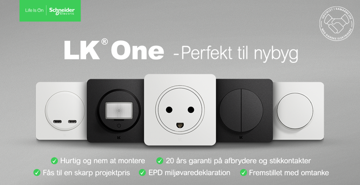 Ballerup, 21. januar 2026 – LK One-serien er ikke blot en enkelt nyhed, men en komplet løsning, udviklet i tæt samarbejde med 50 danske elektrikere. Serien er skabt med fokus på funktionalitet, design og fleksibilitet. Det nye design, har allerede modtage en iF Design-pris for sine innovative egenskaber og æstetiske udtryk.