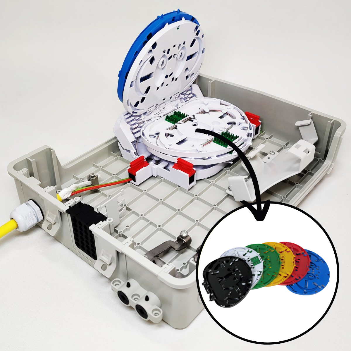 I HellermannTyton fiberboksen kan du tilvælge farvede trays.