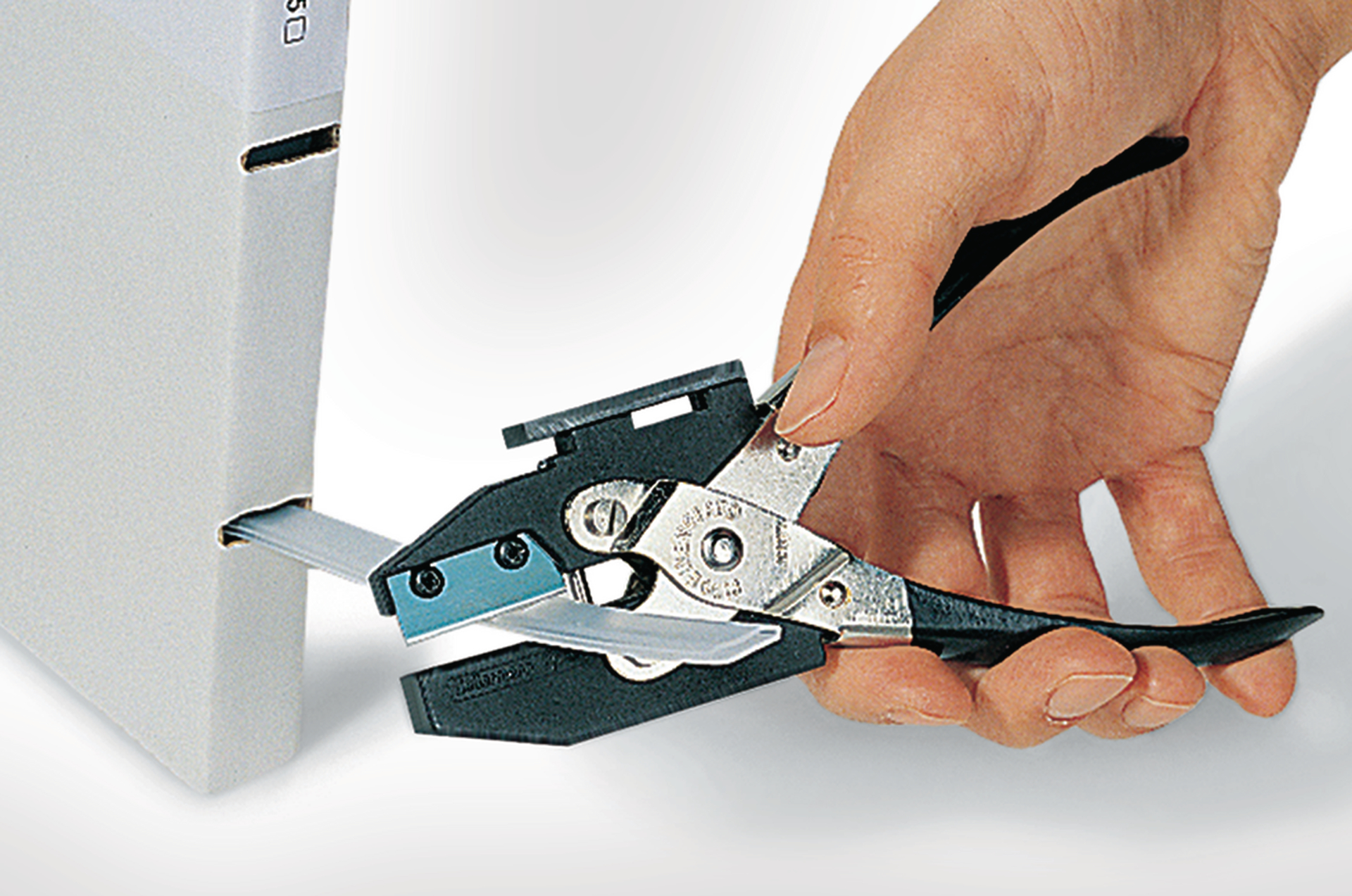 - Du kan bruge HCT1 og HCT2 værktøjet som er ideel til klipning og hulstandsning af mærkeprofilen.