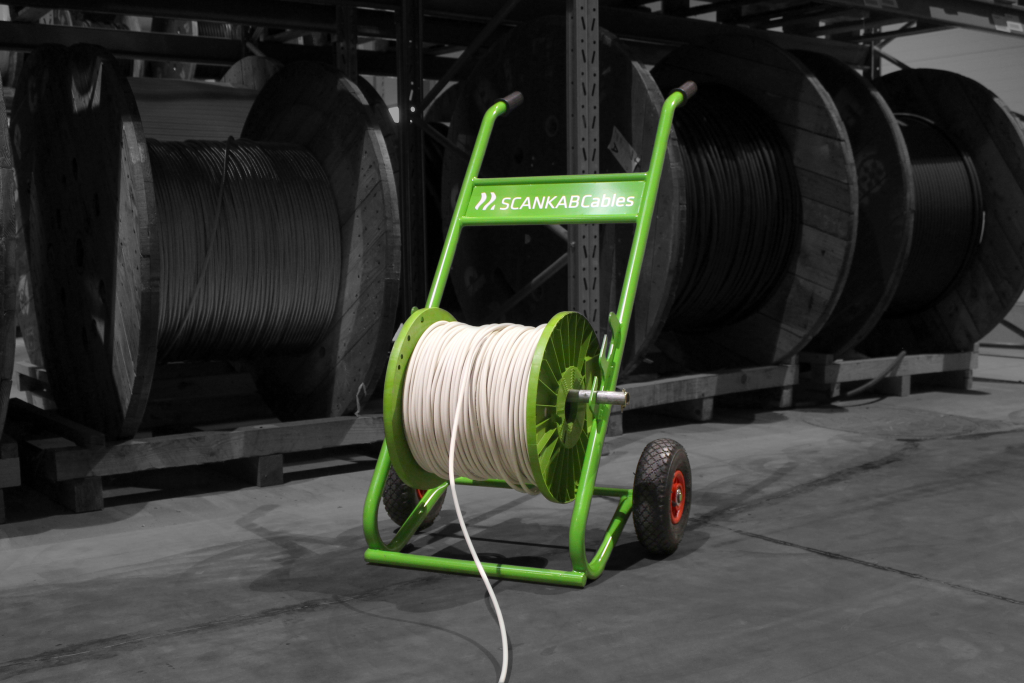 SCANKABS fleksible kabelvogn er robust bygget, men stadig let at manøvrere rundt med. Vognen er enormt alsidig, da den kan anvendes som kabelvogn til en lang række forskellige kabeltyper.