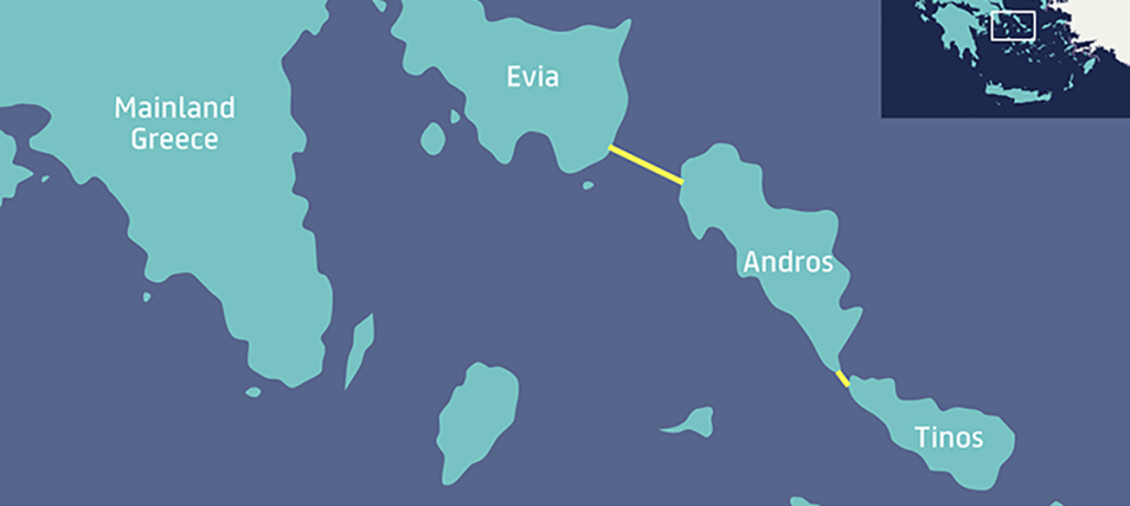 Prysmian Group blev tilbage i september 2018 tildelt en kontrakt til en samlet værdi ca. 21 millioner euro af IPTO (Independent Power Transmission Operator), som er Grækenlands transmissionsselskab, til udvikling og levering af to undersøiske kabelforbindelser mellem øerne Evia, Andros og Tinos (del af øgruppen Kykladerne) og det græske fastland.