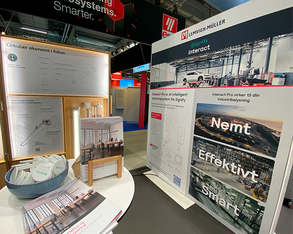 Signify havde fornøjelsen af at være med på Lemvigh-Müllers stand, hvor vi præsenterede vores nyeste løsninger inden for industribelysning og intelligent styring for et bredt publikum af fagfolk, kunder og samarbejdspartnere.