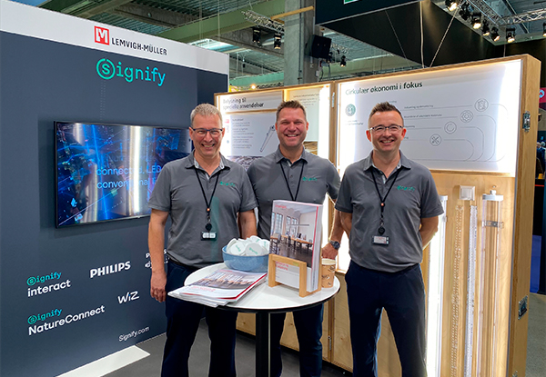 “Det har været en rigtig god messe med stor interesse for vores stand og mange besøgende,” siger Martin Wallenius, Sales Manager Trade Prof. Denmark hos Signify. “Det vigtigste for os er samarbejdet med Lemvigh-Müller. De har et stærkt salgsapparat i industrien og en tæt kontakt til kunderne – de når ganske enkelt ud til langt flere, end vi selv ville kunne.”