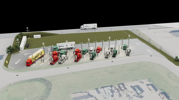 Ladeparken i Køge kommer til at bestå af 24 ladestandere: en kombination af megawatt-ladere og superchargers. I 3. kvartal 2026 kan de første el-lastbiler forventeligt tilgå de nye ladefaciliteter.
