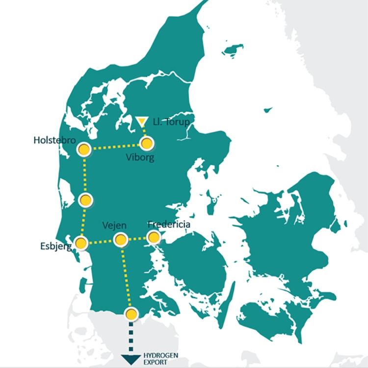 Derfor har Energinet undersøgt muligheden for at etablere et nedgravet brintnetværk i Jylland. Netværket skal forbinde knudepunkter for vindmøllestrøm og brintproduktion, ligesom der skal være et brintlager i Lille Thorup.
